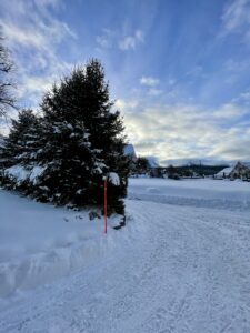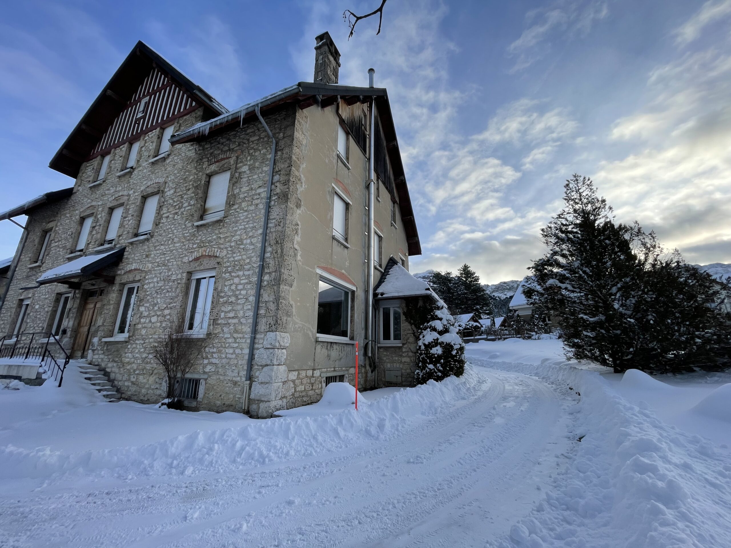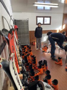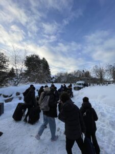 Le groupe de skieurs est arrivé à destination…la neige est au rendez-vous…le soleil est juste derrière les nuages…